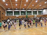 野外活動のフォークダンスの練習をしました。かけ声がだんだん大きくなりました。