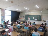 きりんの会の皆さんが来校してくださって、1,2年生にお話を聞かせてくれたり、手遊びをしてくれたりしました。子どもたちからは歓声が聞かれ、絵本の中の世界を楽しんでいる様子でした。