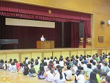 前期児童会役員の退任のあいさつがありました。半年間がんばりました。これからも全校の手本として学校生活をリードしてください。