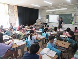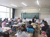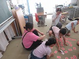 外国語活動で、英語でカルタとりをしました。ALTが言った英語をよく聞いて絵札をとりますが、なかな難しく、お手つきをする人もいました。