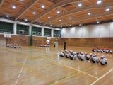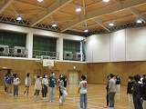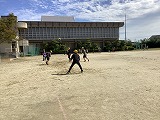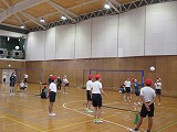 体育ではソフトバレーボールです。サーブの代わりに投げてスタートです。ラリーが続くともっと楽しくなります。