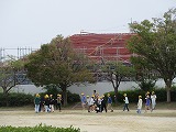 朝は肌寒さがありましたが、日中は日差しがあって少し暑さを感じます。気持ちのよい気候の中、青空の下で子どもたちは思いっきり体を動かして遊んでいました。