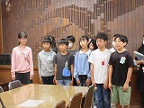 後期児童会役員に選ばれた子たちが、朝会の進め方を後ろから見て、学びました。