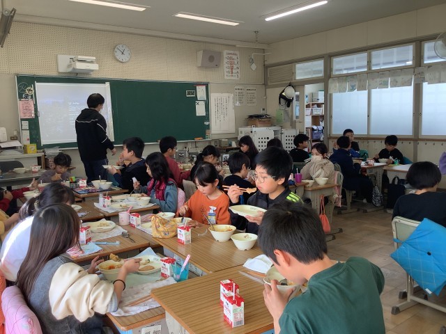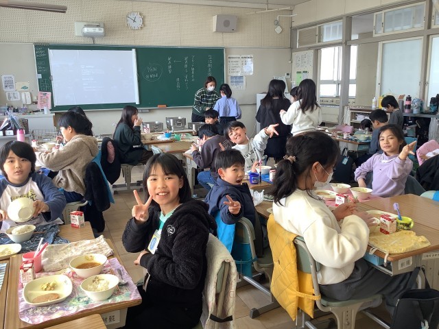 給食の時間の様子 公開日 2026/02/26 更新日 2026/02/26 学校生活のようす 昨日から放送委員会企画で、「卒業企画 教えてください先生インタビュー!」を行っています。6年生の担任がスタジオで子どもたちからのインタビューに答え、生放送で全校にお届けしました。好きな言葉や思い出、子ども時代のエピソードなど、普段はなかなか聞くことのできないお話もあり、各教室では笑顔が広がっていました。明日も楽しみです。 +3