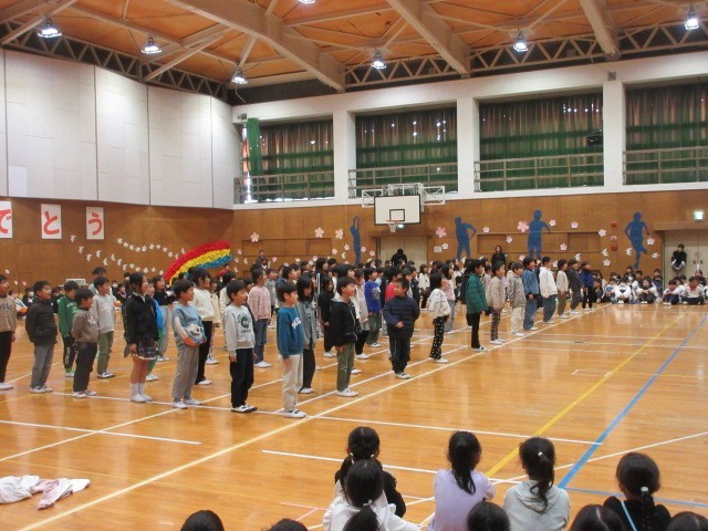 5時間目に6年生を送る会をしました。1年生から5年生が、6年生への感謝の気持ちを歌やダンス、呼びかけなどでで伝えました。