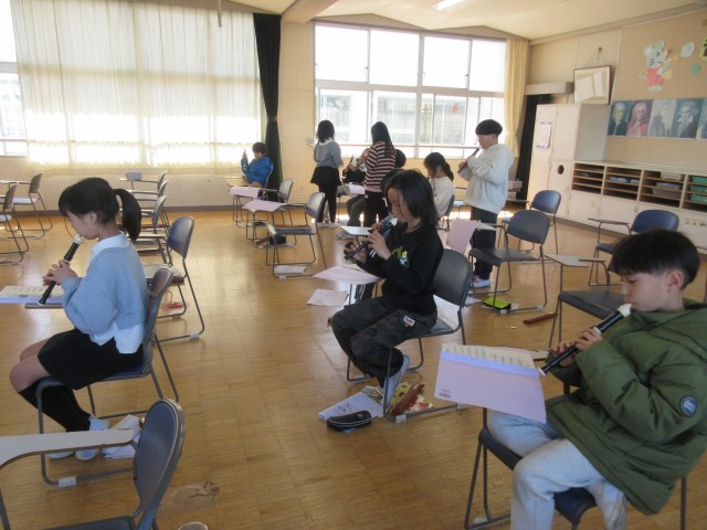 4年生 音楽 公開日 2026/03/04 更新日 2026/03/04 学校生活のようす 音楽ワークを提出する間、リコーダーの個人練習に励んでいました。自分で目標をもって練習することはとても大事です。 +1