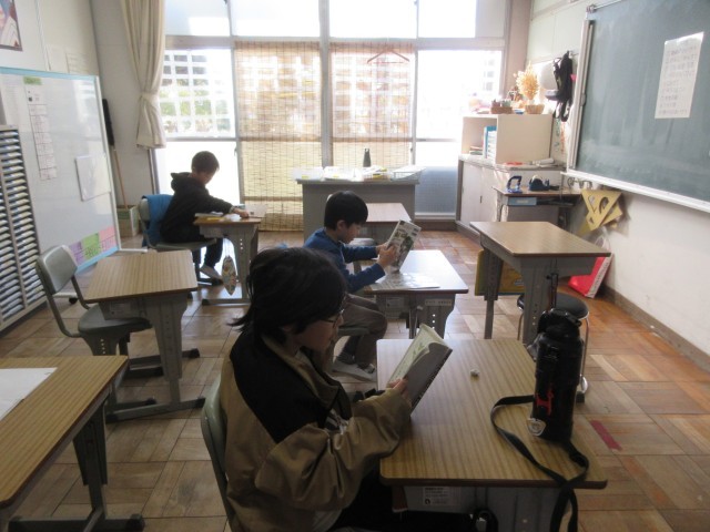 読書タイム 公開日 2026/03/16 更新日 2026/03/16 学校生活のようす 静かに本を読んでいます。読書タイムは、自分で選んだ本をただ静かに読みます。静寂が気持ちよいです。写真はわかば・あおば・よつば学級と、1年生、2年生です。 +3