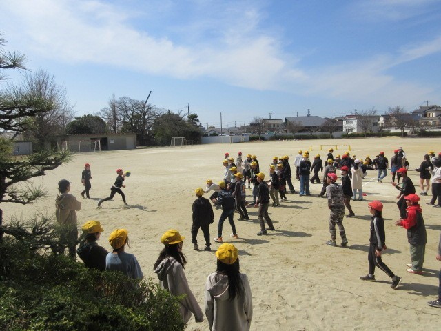 6年生は、学年全体でのレクリエーションをしました。ドッジボール、クラス対抗リレー、そして、鬼ごっごなど、みんなで最後のレクを楽しみました。