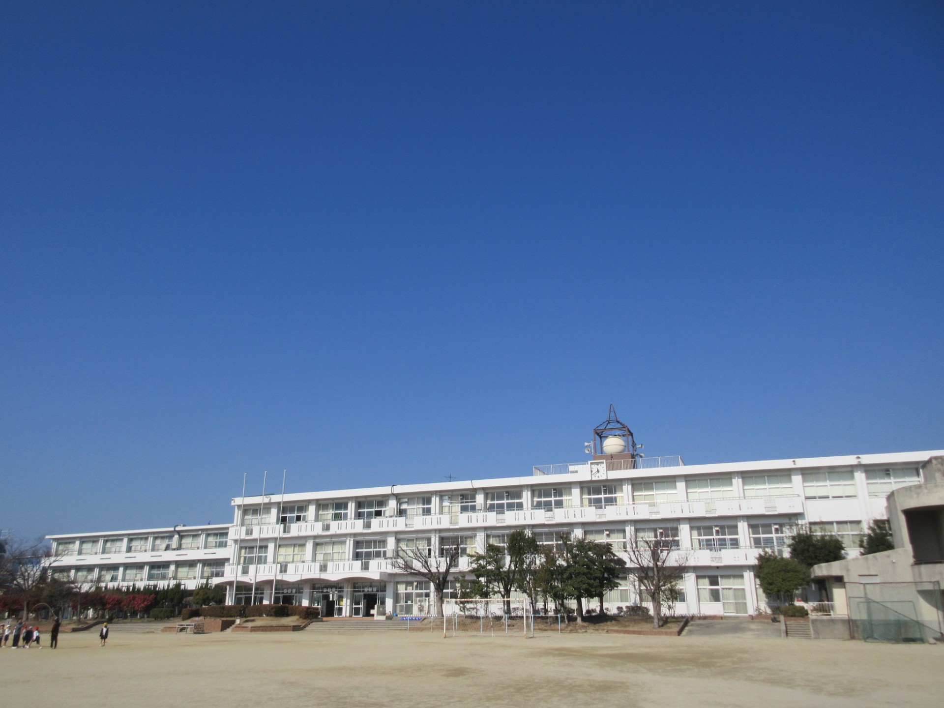 2026/01/07始業式 外壁工事が終わり、足場が解体され、真っ白な壁面が姿を現しています。足場がなくなり、通路も広くなりました。教室や廊下・階段も明るくなりました。 <そうじ>...