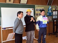 12月14日(日)宮池小学校で、「成岩中校区避難所開設訓練」が行われます。今日は、そのPRに来てくださいました。本日、子どもたちがチラシを持って帰りますので、ご家族でご覧になり、ご都合の付く方は、当日参加をしていただければと思います。