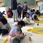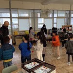 1年生が、2時間目と3時間目に、生活科の「ふゆをたのしもう〜もっとあそびたいな〜」の単元で、喜寿会,百寿会の方に来ていただき、「昔の遊び」をしました。「めんこ」「けん玉」「お手玉」「あやとり」「こま」「だるま落とし」で遊びました。地域の方のちょっとしたアドバイスで、あっという間にできるようになった人がいました。ぜひ、家でも遊んでみてください。