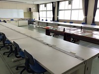 ミーティングルーム 以前コンピュータ室だった教室を、ミーティングルームとして、本年度から活用しています。研修会では、資料を展示したり、話し合いを行ったりするのに利用しました。