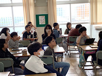 6年3組です。学級会を開いていました。議題の一つ目は「今のクラスの問題点、改善点について」でした。気になることについて、今後「注意し合う、意識し合う」ということで、意見がまとまりました。二つ目は「会社活動について」でした。現在8個の会社があるそうです。活動を活発にするために、どんな行動が必要かを考えていくことになりました。どんな答えを導き出すのか楽しみです。