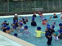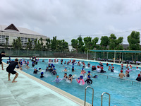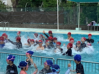 水泳の授業(1・6年生) 公開日 2025/06/23 更新日 2026/02/27 学校生活のようす 水泳の授業がありました。1年生と6年生が同じ時間に入りました。「となりのトトロ」の曲に合わせて、一緒にアクアビクスを楽しみました。しばらくすると、雨が降ってきたため、残念ながら、途中で水泳の授業を切り上げました。見学者は会議室で、静かに自習をしていました。 1年生 6年生 今日の出来事