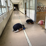 大地震発生を想定した避難訓練を行いました。予告なしでの訓練でした。今回の訓練は「場所に関係なく、適切な判断をして自分の身を守ろう」がねらいでした。一次避難では、素早く机の下にもぐったり、速やかにホールの真ん中に姿勢を低くして集まったりすることができました。今回は、二次避難を行いませんでしたが、「おはしも」をしっかり守って、自分の判断で自分の身を守れるようにしましょう。