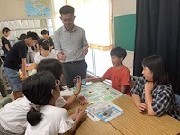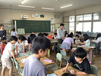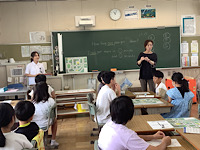 5年生が、ITトラックロボットを使い、外国語の授業をおこないました。ICT支援員さんにも協力していただき、今回は東京のマップを用いて、「国技館・東京・豊洲市場」の三つの場所を、いかに早く巡るかということをプログラミングしました。振り返りでは、3箇所を巡るのに何分かかったかを、「can」を使ってグループごとに発表しました。2学期からA LTが代わりました。早速子どもたちから話しかけるなど、すぐに仲よくなることができました。