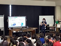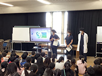 5年生が9月22日(月)の5時間目に、知多半島総合医療センターの循環器科、脳神経科、救急外来担当の方に来ていただき、宮池ホールにて「いのちの授業」を行いました。「病院の紹介」から始まり、「いのちの誕生」について、そして、聴診器で実際に自分や友達の心臓の音を聴き、生きていること、そして、大事な「いのち」を確認しました。