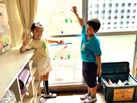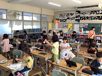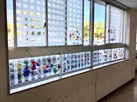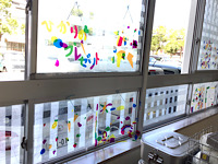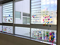 授業の様子 公開日 2025/09/26 更新日 2026/03/06 学校生活のようす 2年2組です。図画工作科の授業を行っていました。「ひかりのプレゼント」の単元で、「ひかりに当てたらどんな形になるか考えよう」をテーマに取り組んでいました。シール式セロハンをはさみで切って、作りたい物の形になるように貼っていきました。最後は紐を通して、バッグにしました。 廊下に飾ってあった作品です。光が当たり、きらきらと輝いていました。 2年生 今日の出来事