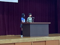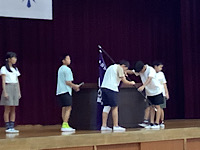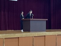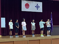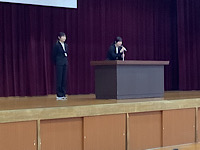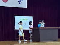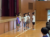 保健委員会からは、10月の保健目標『目を大切にしよう」の話がありました。10月10日は「目の愛護デー」です。「長時間物を見続けない」「姿勢を正しくする」「前髪が目に掛からないようにする」など、気を付けることを教えてもらいました。その後、前期児童会役員から、後期児童会役員への引き継ぎを行いました。最後に、今日から3週間教育実習を行う、2名の実習生の自己紹介がありました。有意義な3週間にしてもらえたらと思います。