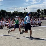 学年代表リレー(5・6年生)です。各学級から選ばれた8名ずつで競いました。バトンの受け渡しも重要です。大放課や昼放課にも練習していたクラスがありました。練習の成果が発揮できたでしょうか。両学年とも1位と2位がほぼ同着で、見ごたえがありました。