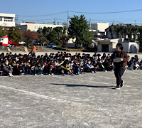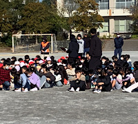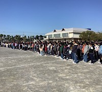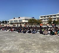 2時間目に、「火災避難訓練」を行いました。校舎内に一人取り残されたという設定で行いました。出火元である理科室から避難した学級は、子どもたちだけで、安全に素早く避難することができました。他のクラスも「おはしも」を守り、真剣に避難することができました。
