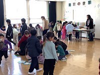 南吉屋 公開日 2025/12/04 更新日 2026/03/16 学校生活のようす 大放課に、図書ボランティア虹の会の方による「南吉屋」が開かれました。子どもたちは、カルタやパズルやきのこ投げ、ぬりえやうなぎすくいなど、思い思いに楽しんでいました。子どもたちと一緒に、ぬりえを楽しんでいる先生もいました。子どもたちもうれしそうでした。 今日の出来事