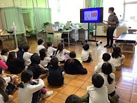 2年1組です。保健室で身体測定を行いました。その後、養護教諭から「おとなのはをむしばからまもろう」というテーマで、歯についての話を聴きました。6歳臼歯についてのクイズでは、「はえたてのころはとてもやわらかい?」「いちばんちからもち?」などがありました。歯ブラシを細かく動かすことや1本ずつ丁寧に磨くことなど、前歯や奥歯の磨き方の違いについても教えてもらいました。早速、今日から実践できるとよいですね。