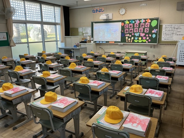 4月8日(水)、入学式当日です。よい日和になりました。学校は、新入生を迎える準備万端です。
