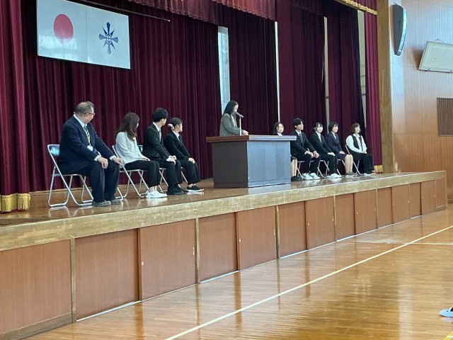 4月9日(木)に、新任式を行いました。本年度から「チーム宮池小」に加わってくださった方々に、自己紹介をしていただきました。本が好きな先生、バドミントンが得意な先生、トトロに似ている先生、ドラえもんが好きな先生など、子どもたちは興味津々でした。これから、よろしくお願いします。