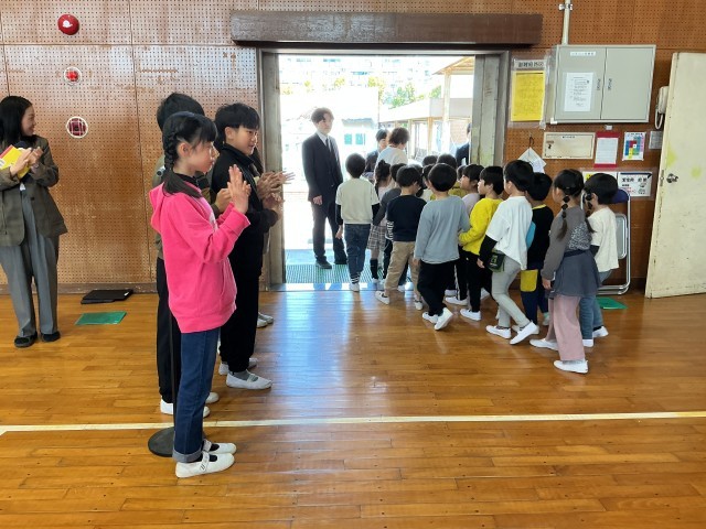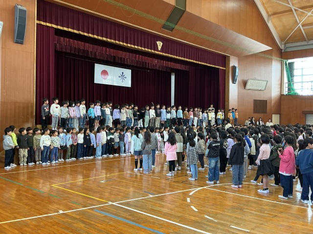 始業式の後に、新1年生と、新2年生から新6年生の対面式を行いました。児童会長から、「何かあったら頼ってください」と、頼もしい挨拶がありました。新1年生からは、元気よく「お願いします」の声が聞かれました。本年度は児童数696名でスタートです!