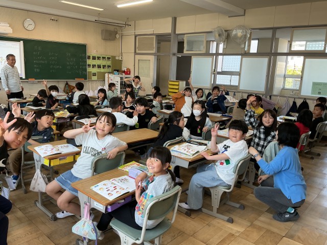 3年2組では英語の授業で、挨拶を聞いて、テキスト内の子どもと国旗を線で結んでいました。また、挨拶をして、クラスの仲間と名前を言い合う活動を行っていました。元気いっぱい、笑顔いっぱいの時間でした。