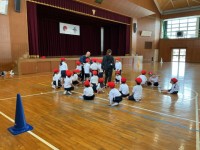 体育の授業の様子です。1年2組は、体を動かす運動で、鬼ごっこをしていました。さつき1組は、ニュースポーツ「モルック」を行っていました。2人ずつペアを組んで、校長も一緒に楽しいひとときを過ごしました。