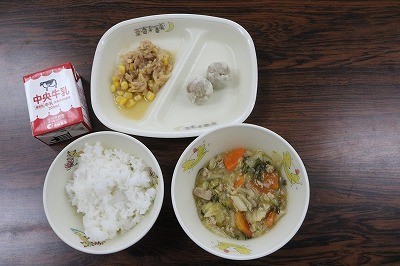 ごはん・牛乳・しゅうまい・だいこんサラダ・はっぽうさい