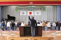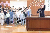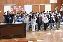 明後日に実施される卒業式に向けて4・5・6年生合同で確認練習が行われました。