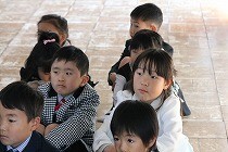 式後、保護者は教室にて担任から話を聞きました。子どもたちは、別室でDVD鑑賞を行っていました。