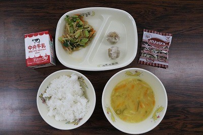 ごはん・牛乳・しゅうまい・ナムル・ちゅうかコーンスープ・かんそうこざかな