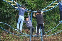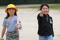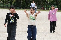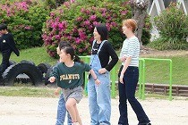 授業参観前にグラウンドで子どもたちとともに遊ぶ保護者の姿が輝いていました。
