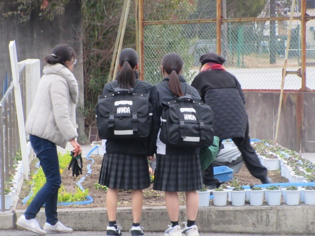また、同時進行で、半田中学校PTAのみなさんがPTA花壇の整備に来てくれました。