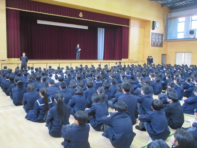 みんな真剣な態度で全校集会に参加できたね。ええぞ、半中生!
