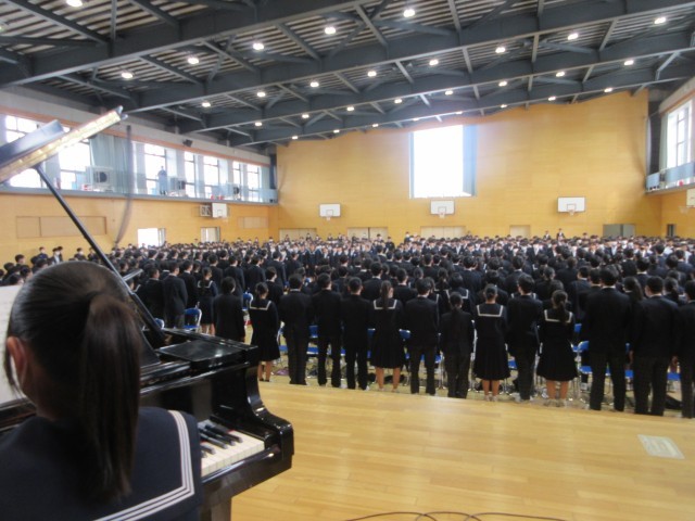 今日の午後は、体育館に全校生徒が集まり、初めての合同「卒業式歌練習」です。