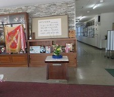 正面玄関と職員室前から中間・北館に向かう途中にも「春の花」をいけてくれました。ありがとうございます。
