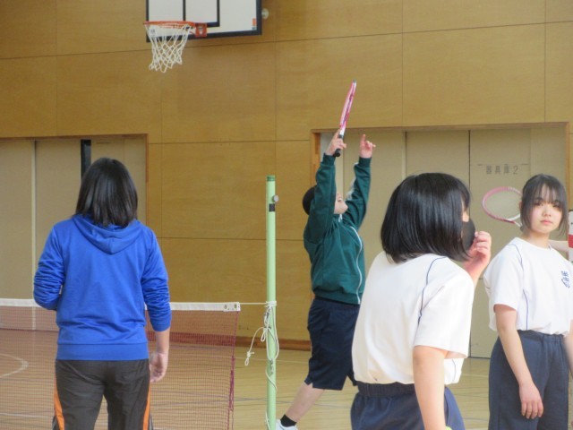 1年生の体育は「ミニテニス」、今日は「愛ちゃん杯・寛ちゃん杯争奪ミニテニス大会」です。