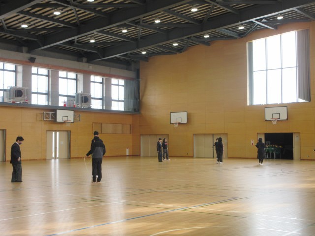 半田中学校校内教育支援センター「I(アイ)ルーム」のみんなが体育館にあつまり、恒例の「愛ちゃん体育」です。