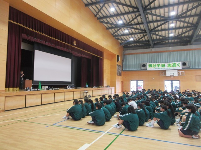 今日は1年生全員が体育館に集合し、学年集会&お楽しみ学年レク大会を行いました。