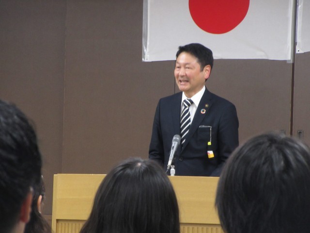 朝は日差しがありましたが、半田市役所での「半田市教職員受け入れ式」が行われる頃にはしっかりとした雨となってしまいました。