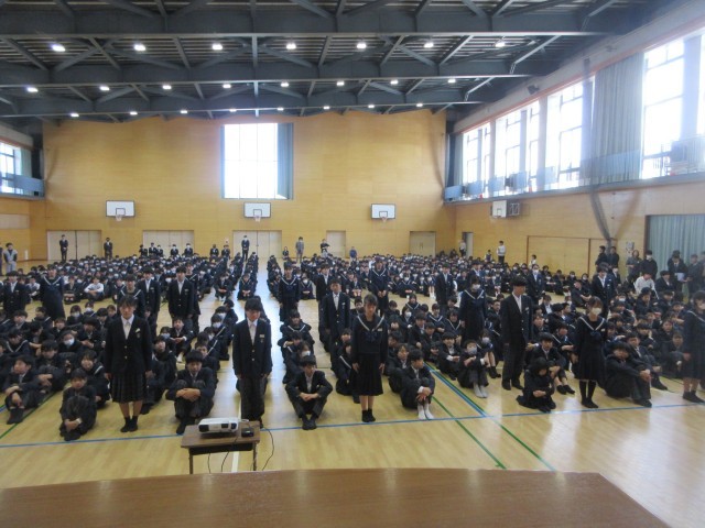 今日は、学級三役、委員会委員長、生徒議会議長、生徒会長をはじめとする生徒会執行部の任命を行いました。