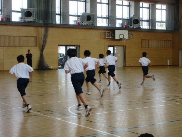 1年生の体育は体力テスト「20mシャトルラン」です。