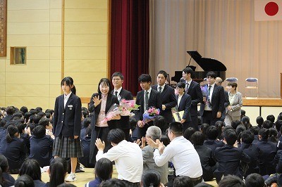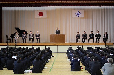 離任式 公開日 2026/04/17 更新日 2026/04/17 日誌 離任式が行われました。転出した9名の教職員が来校し、お話をしてくださいました。転出された先生方の思いを受け継いで、よりよい乙川中学校を創っていきましょう。