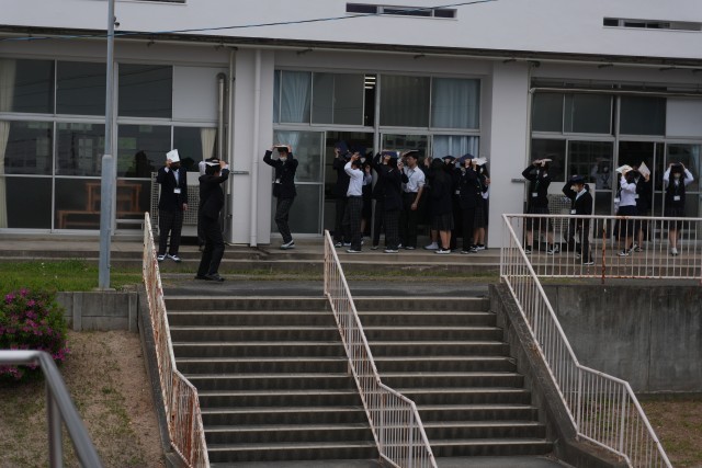 4月13日、地震避難訓練を実施しました。新しい学級になり、避難経路の確認と安全な行動の実践を目的に行いました。短時間に、私語もなく整然と行えた生徒。