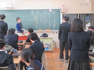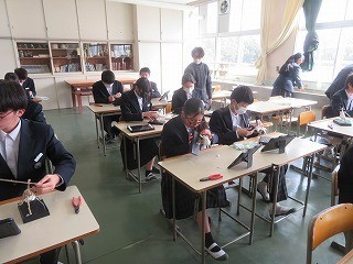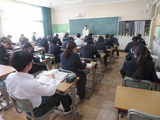 1月26日(月)の5時間目の様子です。教室では国語科の授業や道徳の授業を行っていました。理科室では実験、美術室では造形を行っていました。また、運動場ではハンドボールを行っていました。寒さに負けず、頑張って取り組んでいました。